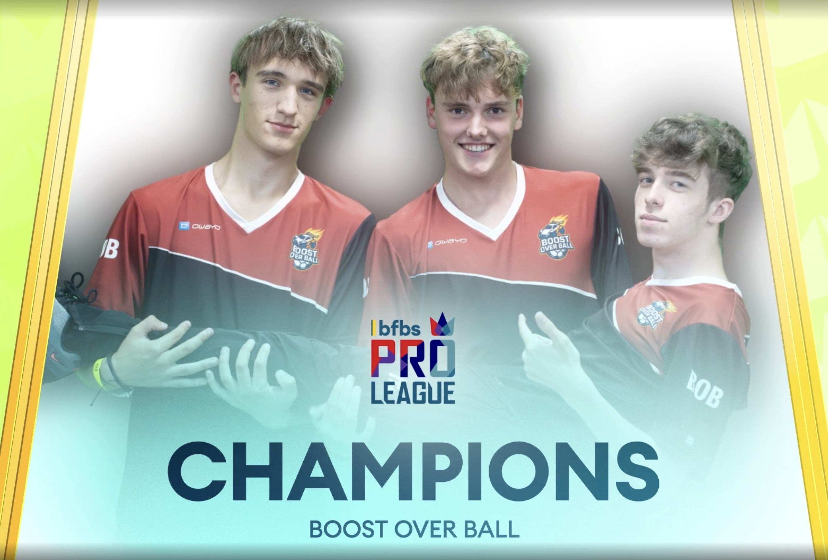 CONGRATULATIONS TO "BOOST OVER BALL", OUR INAUGURAL CHAMPIONS OF THE BFBS PRO LEAGUE, FEATURING ROCKET LEAGUE. AFTER A NAIL-BITING 4-3 SERIES SCORE IN THE FINALS VS. RIVALS "OMNIA", THEY LIFTED THE FIRST BFBS PRO LEAGUE TROPHY.